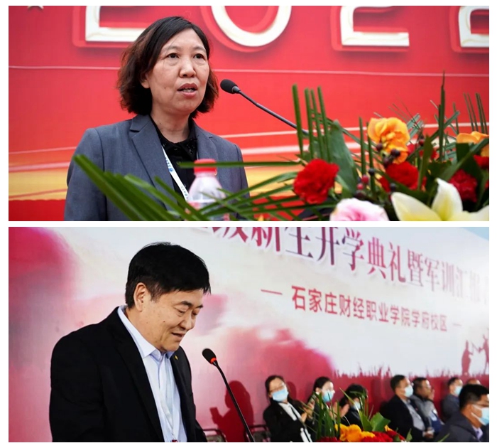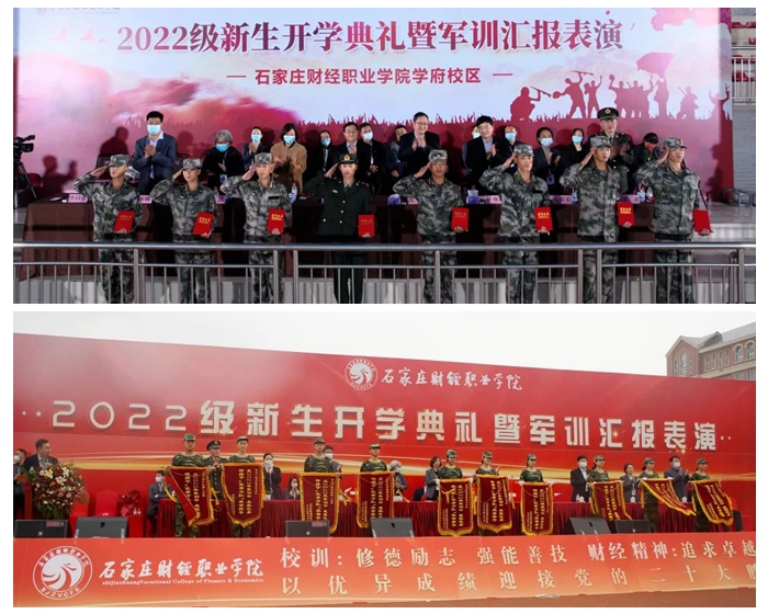 肖玉辉、许继海宣读《石家庄财经职业学院关于表彰优秀教官、优秀方队、优秀内务宿舍和优秀标兵的决定》。