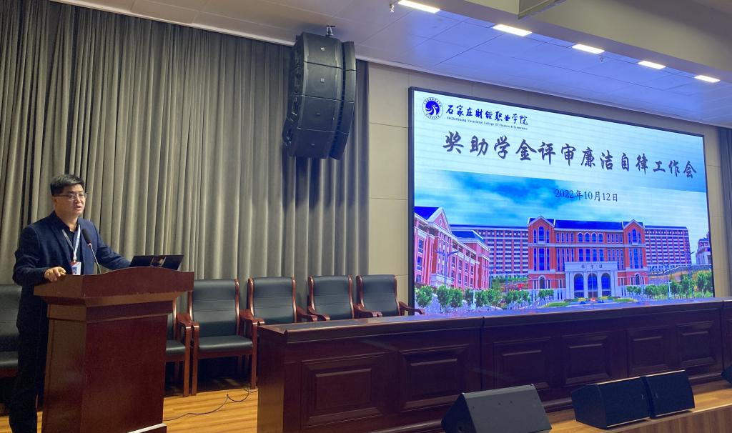 为严格落实国家奖助学金评审程序,规范国家奖助学金评审材料填报工作,进一步提升学校2022年国家奖助学金评审工作质量,我校于10月12日14:00在第一报告厅召开了奖助学金评审培训会暨廉洁自律工作会。校长助理王永利、学生处、各二级学院主管学生工作的书记、副书记及全体辅导员参加。会议由学生处处长王志军主持。
