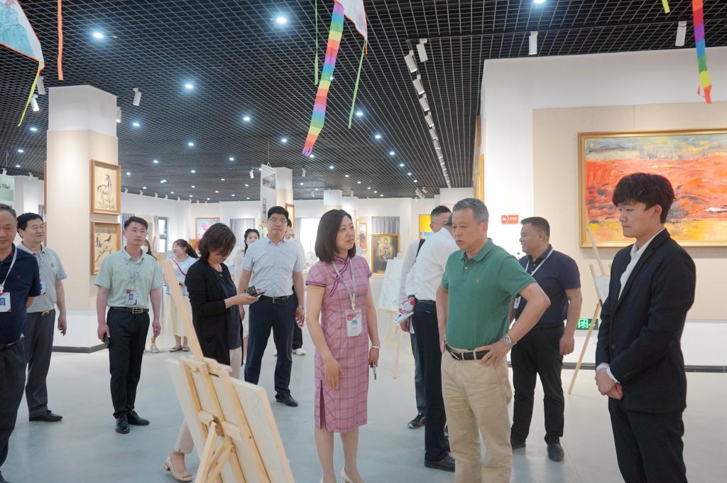 在参观过程中,校领导听取了学生代表对作品创作过程的讲解,还不时询问他们在创作过程中的细节,了解各类作品的创作背景、文化内涵、实训情况,对学生和指导老师的辛勤创作给予了很高的评价。
