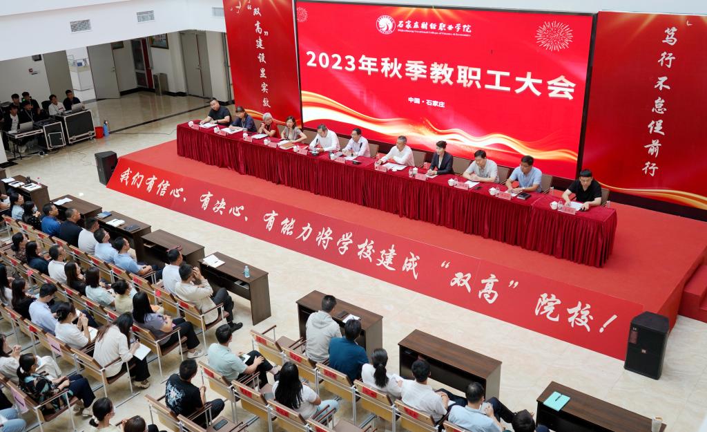 9月15日,我校召开2023年秋季教职工大会。学校校长赵建华,总监李文涛,副校长高森,党委副书记肖玉辉,副校长许继海、姜波、王永利、李同鑫,校长助理赵振新出席会议,全体教职工参加。大会由副校长葛伟主持。