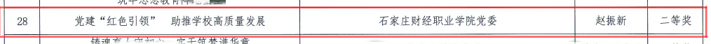近日,中共河北省委教育工作委员会发布《关于公布高校党建工作典型案例评选结果的通知》,揭晓了高校党建工作典型案例评选结果。我校《党建“红色引领” 助推学校高质量发展》荣获省级二等奖,实现学校党建工作新突破!充分展示了我校党委通过创建“红色引领”党建品牌活动,推动学校党建工作守正创新、特色发展的实践成果。