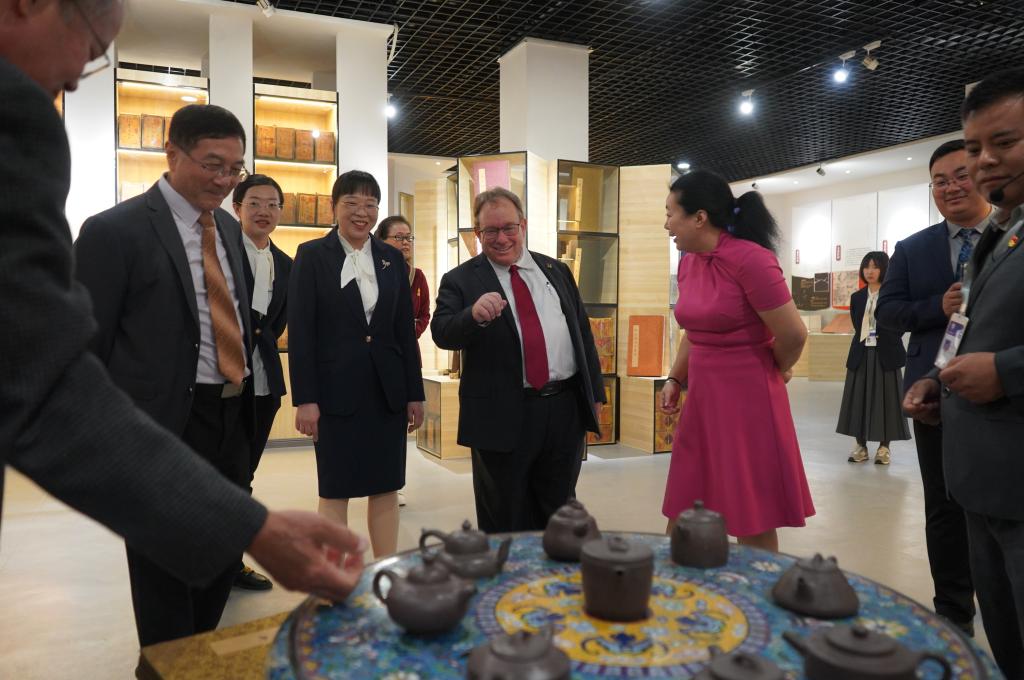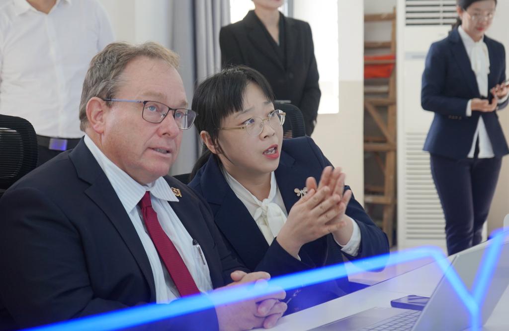 在学校领导的陪同下,罗伯特·戴维斯博士一行先后参观了学校校史馆、中国职业教育展室、中国传统文化典籍馆、学生事务服务中心和信息化教学运行中心以及智慧物流实训中心、物流商贸展室、无人机实训中心等实训室,详细了解了学校的办学历史、学生管理改革模式和数字化、信息化、智慧化的教学管理模式,并对学校以文化人的做法、浓厚的育人氛围给予高度赞赏。