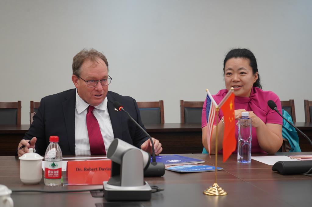 董事长肖瀚向来访人员介绍了学校的历史沿革、专业设置、办学特色、发展战略。他指出,随着疫情的结束,国家和社会的开放,学校实质性国际交流事务在逐渐恢复和推进,目前已在服务“一带一路”倡议、“中文+职业技能”、国际标准共建等方面取得了一定成绩,国际交流合作的范围与领域不断扩大。同时,他希望罗伯特·戴维斯博士此行能加深两校之间的交流,促成两校教育事业在人才队伍建设、教育资源开发、人文交流等方面的合作。