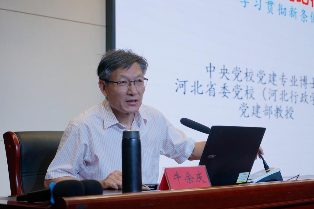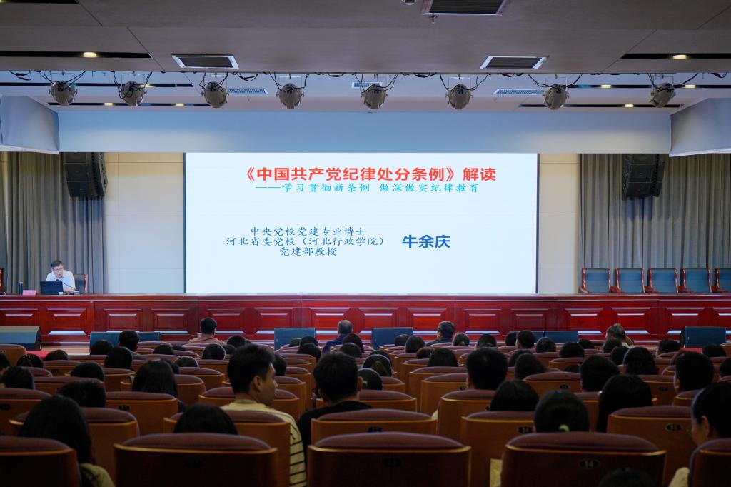 5月17日上午,我校在第一报告厅举办了党纪学习专题讲座,邀请中央党校党建专业博士、河北省委党校(河北行政学院)党建部牛余庆教授授课,由校党委书记薛向东主持,全体中层及以上干部、全体党员参加。