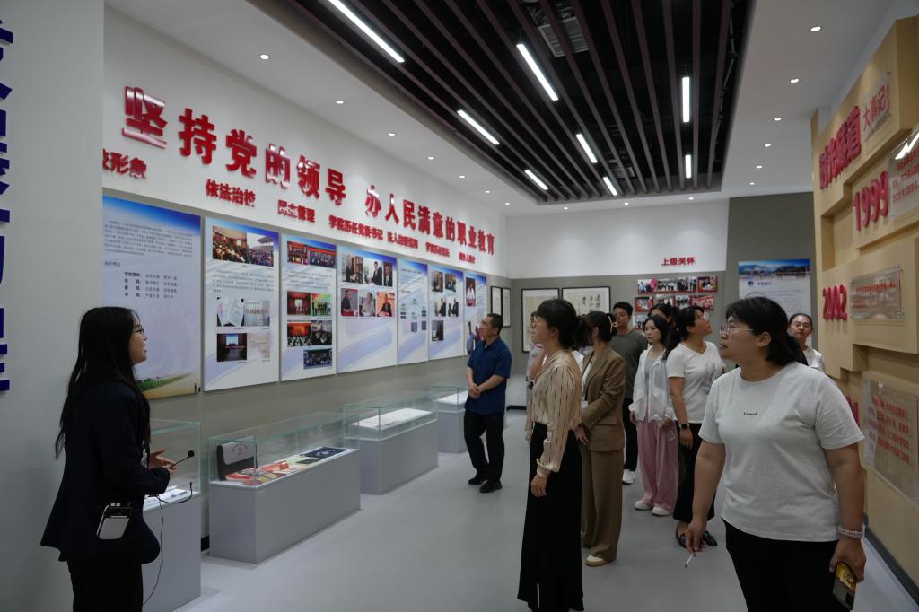 武相艳一行先后实地参观了学校校史馆、中国职业教育展室、共产主义运动展室、国防教育展室等,对我校独具特色的“红色文化”系列展室群和丰富的教育教学资源表示高度赞赏。
