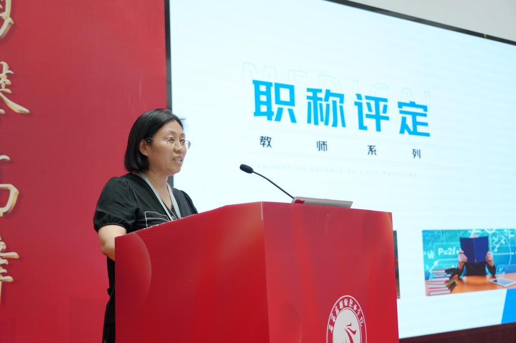 随后,绩效考核办公室副主任何会芳解读了学校2024年职称评审文件及2024年绩效考核工作方案,重点对以上文件的变动之处和新增内容进行了详细地说明。使广大教职工对职称评审条件有了深层次地了解,对个人职业成长发展进行提前规划和精准定位。同时,通过学习绩效考核工作方案,也帮助广大教职工进一步统一思想,紧抓落实,切实发挥好绩效考核对学校发展的引导和促进作用。