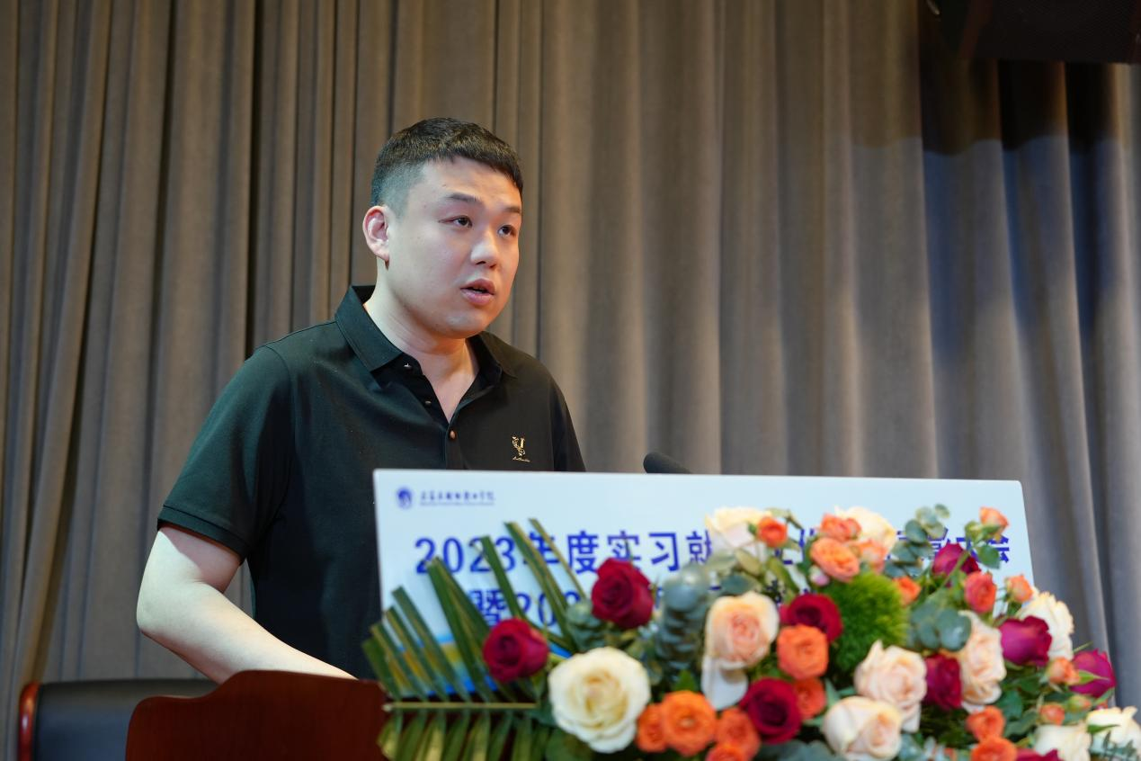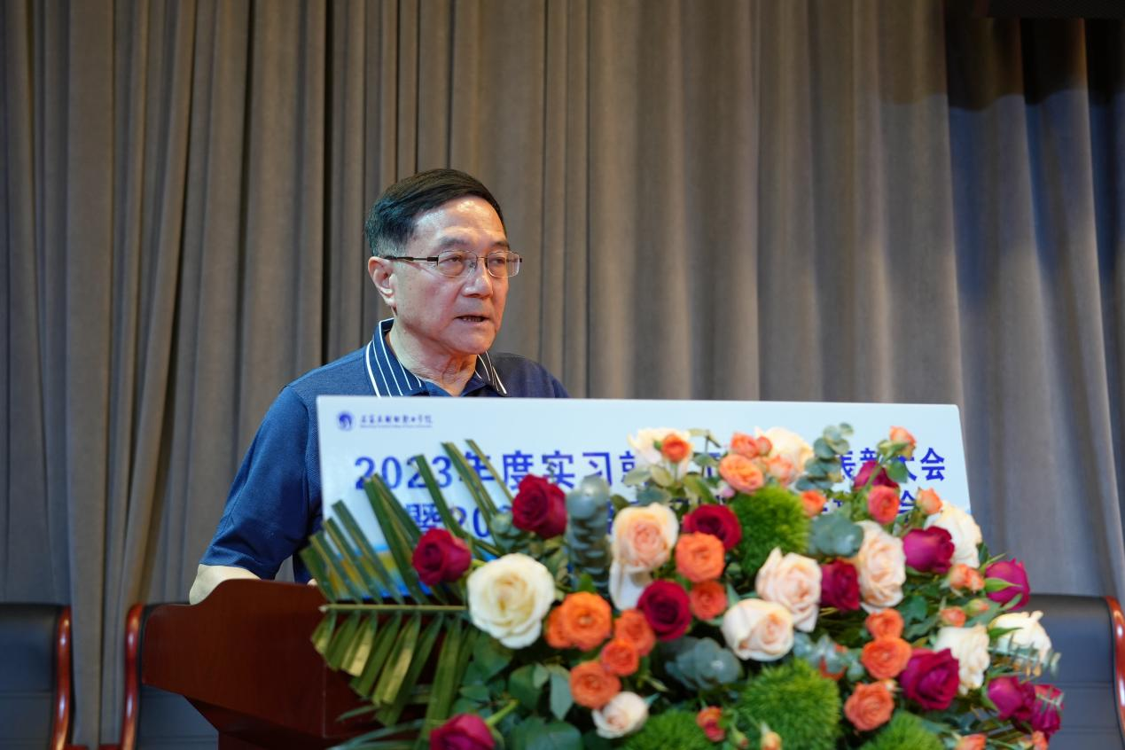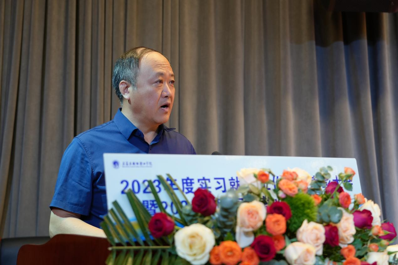 随后,校企合作与就业处处长吴海军作了2023年度实习就业工作总结报告,回顾了过去一年实习就业整体情况,分析了取得的成绩、面临的挑战以及采取的措施。
