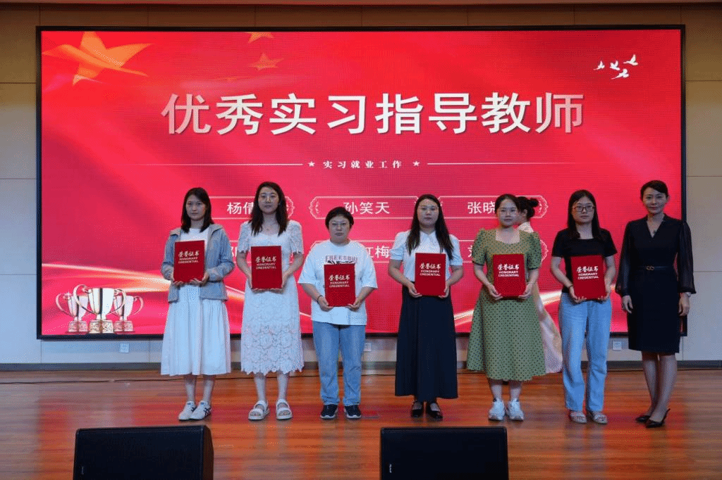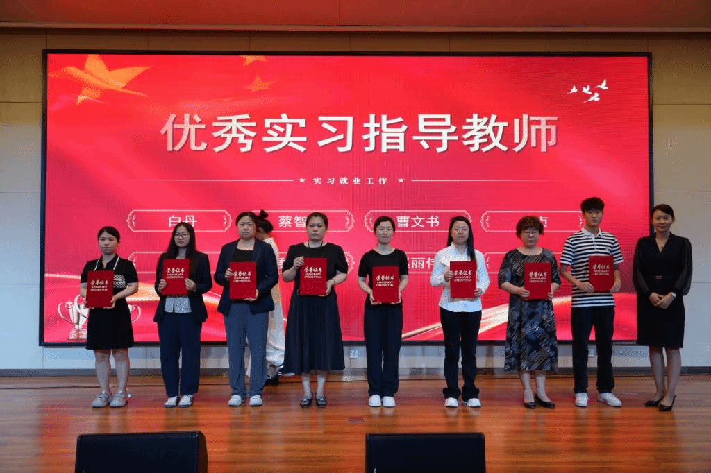 校领导为学前教育与艺术教育学院、会计与金融学院颁发“优秀集体”牌匾;副校长高森为白丹、蔡智慧等14位教师颁发“优秀实习指导教师”荣誉证书;副校长王永利为李佳玮、赵丽莎等11位教师颁发“优秀实习就业辅导员”荣誉证书;校长助理赵振新为王佳乐、尹鹏、赵银霞颁发“优秀实习就业管理员”荣誉证书。