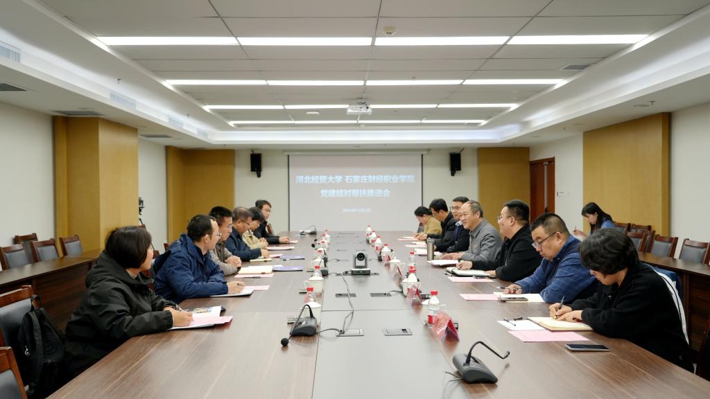 12月4日,石家庄财经职业学院与河北经贸大学开展党建结对帮扶活动。河北经贸大学组织部部长邢明军,我校党委书记薛向东、校长助理赵振新出席会议。