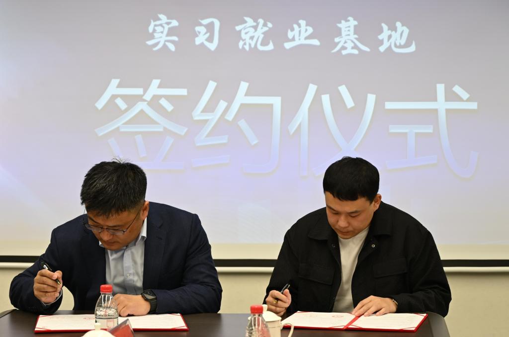 在热烈的掌声中,李同鑫副校长与孟海奇总经理共同签署了“实习就业基地”合作协议,双方将在人才培养、专业建设、课程改革、实习就业等方面开展合作。