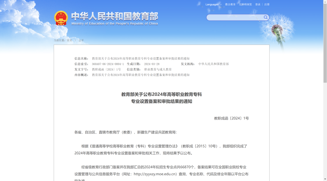 此次高等职业教育专科专业设置备案工作对专业布点进行了较大的调整优化,幅度是自2021年新版《职业教育专业目录》发布以来最大的一年。